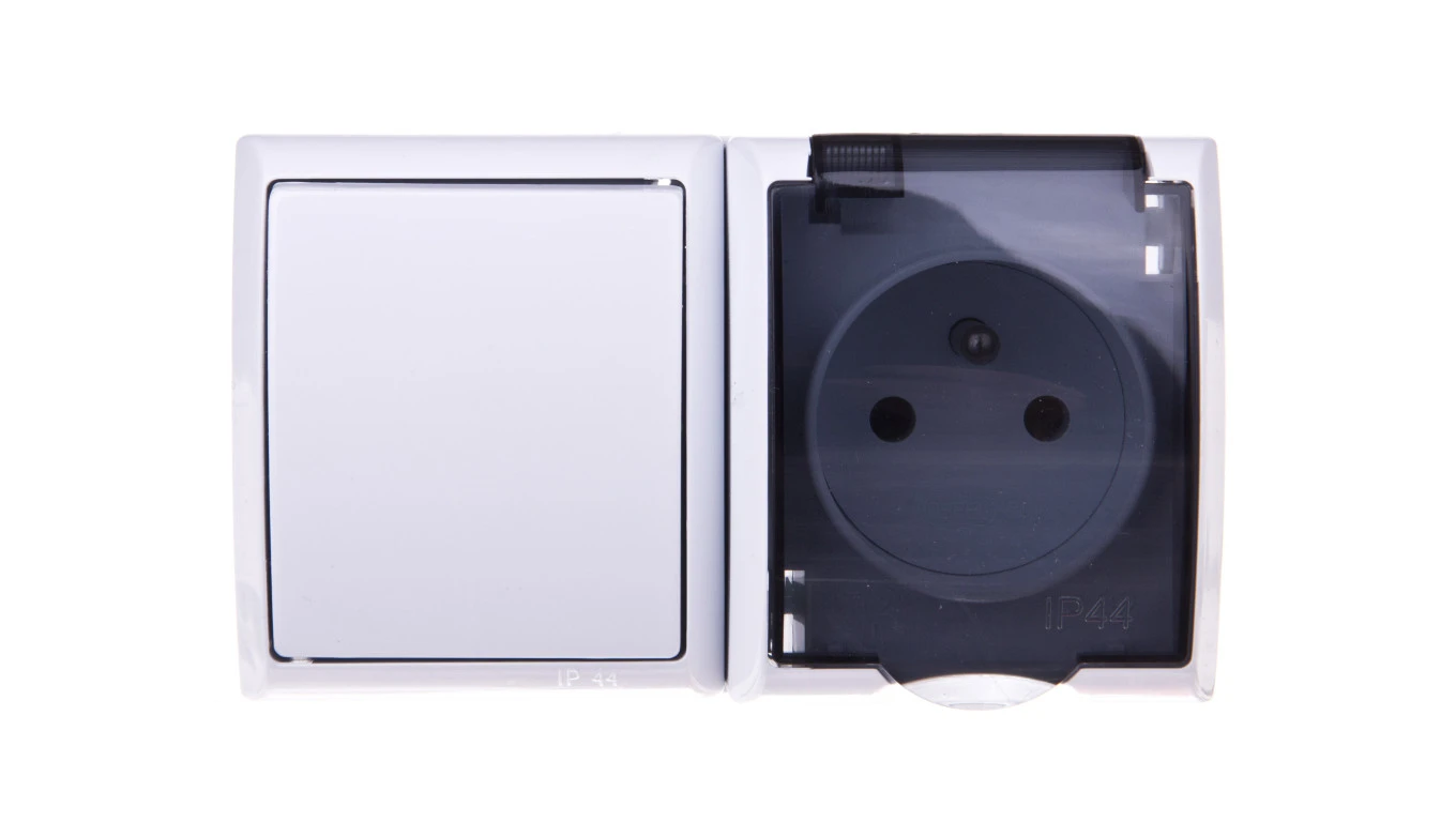 FALA Łącznik hermetyczny pojedynczy + gniazdo z/u z klapką przezroczystą białe ZH-Ł1G/00/d