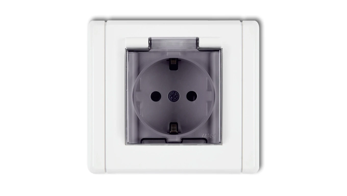 FLEXI Gniazdo bryzgoszczelne z/u SCHUKO (klapka dymna) biały FGPB-1sdp