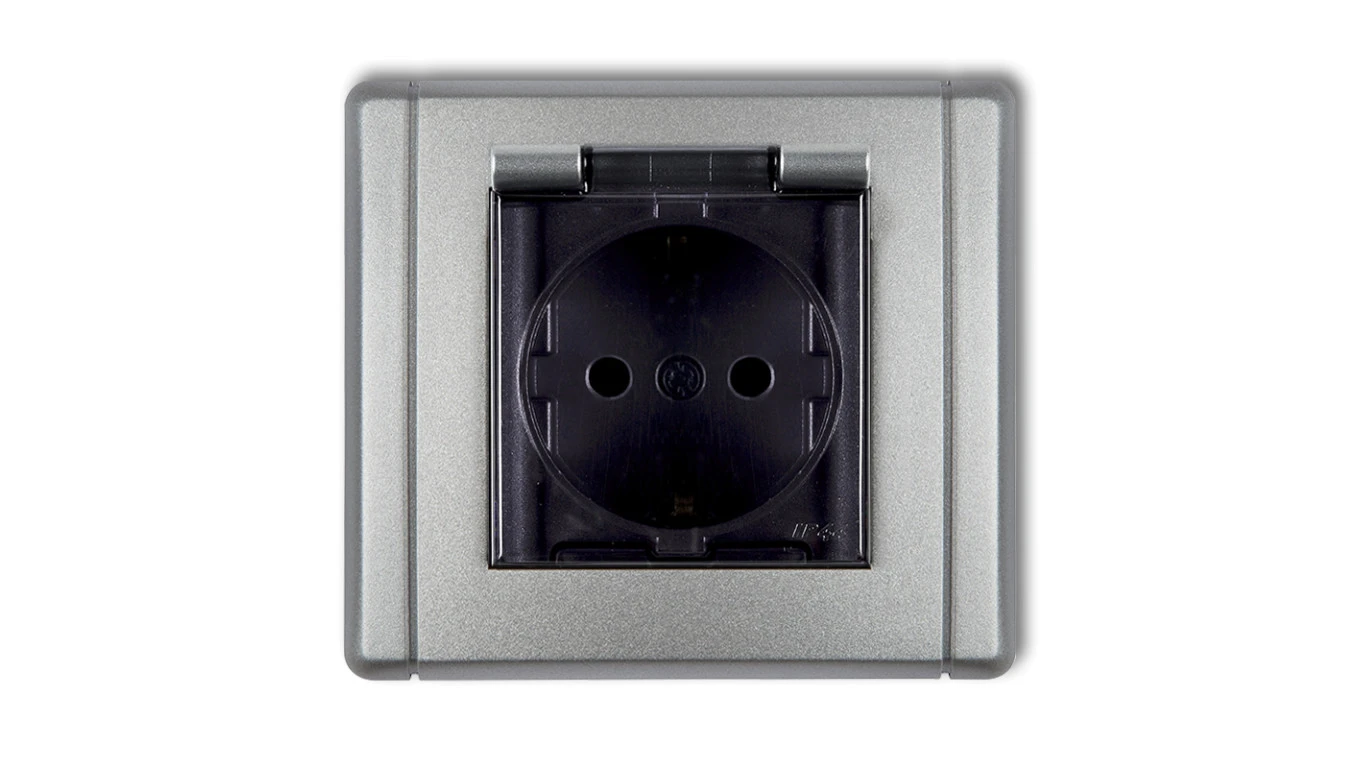 FLEXI Gniazdo bryzgoszczelne z/u SCHUKO (klapka dymna) srebrny metalik 7FGPB-1sdp