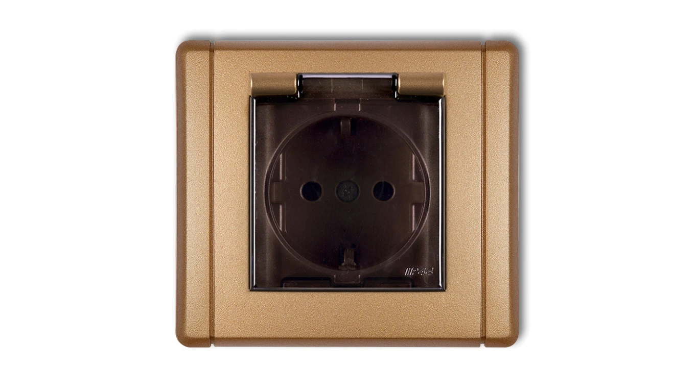 FLEXI Gniazdo bryzgoszczelne z/u SCHUKO (klapka dymna) złoty metalik 8FGPB-1sdp