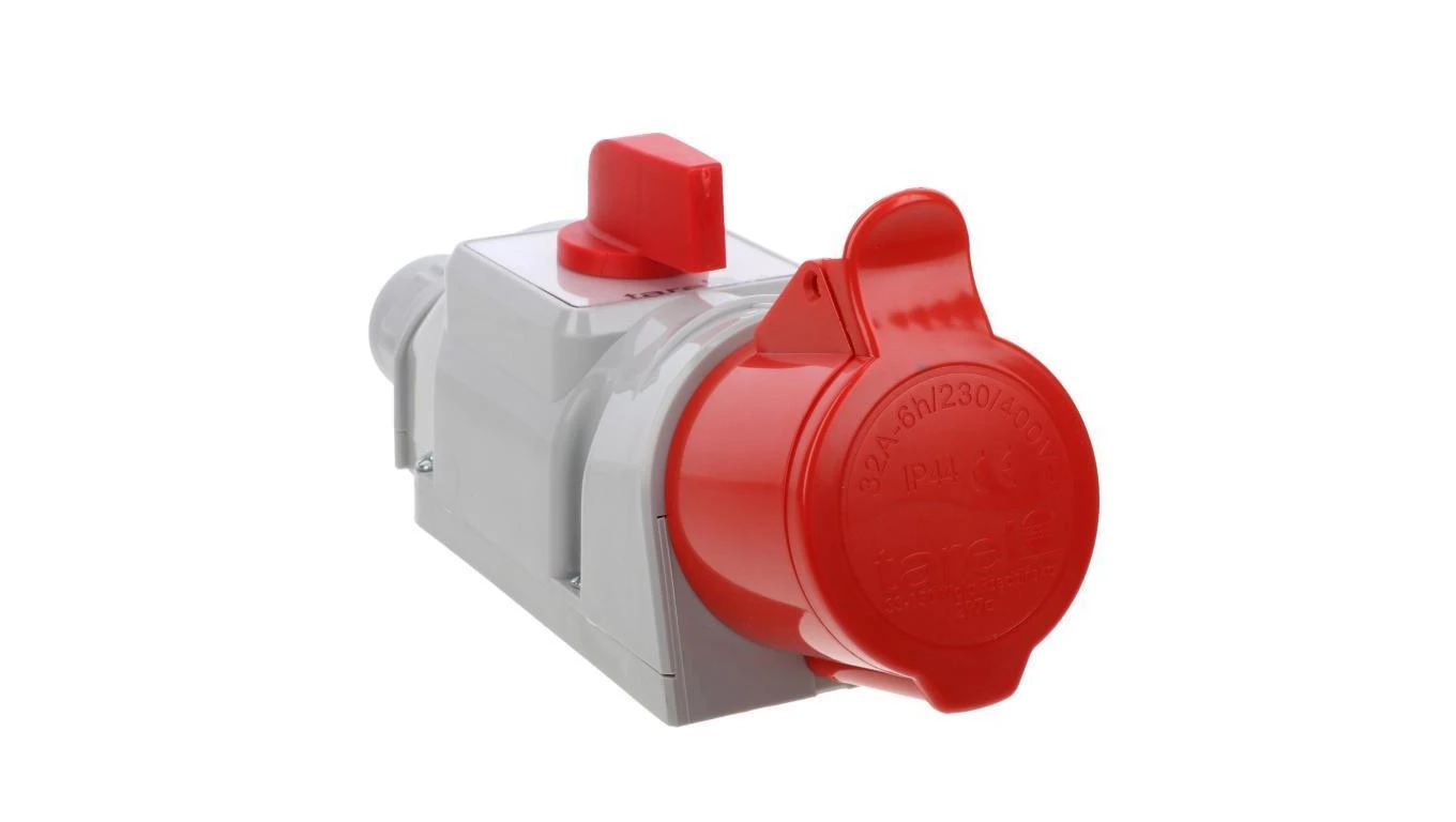 Gniazdo stałe z wyłącznikiem i podwójną blokadą mechaniczną 63A 5p 400V 6h IP44 16603