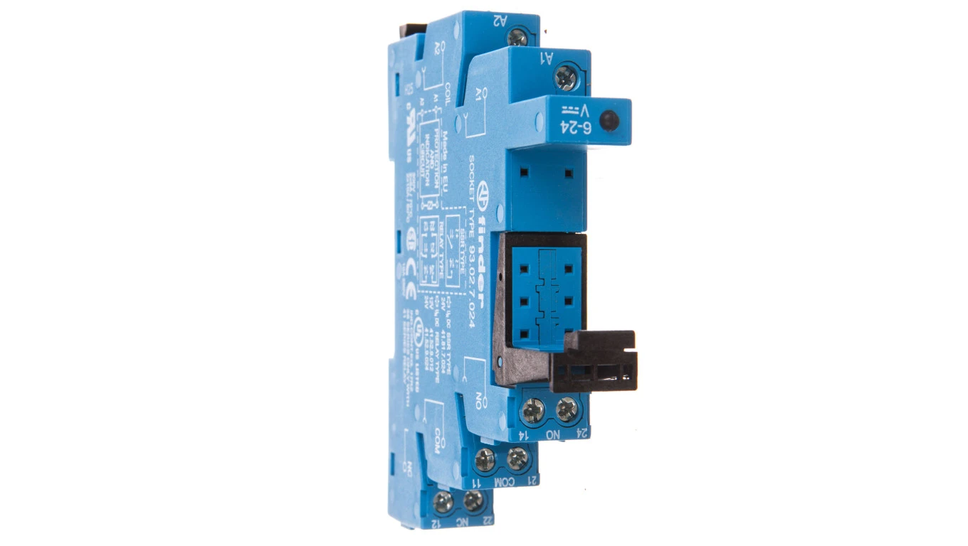 Gniazdo do przekaźników serii 41.52/41.61/41.81 6-24VDC, zaciski śrubowe, montaż na szynę DIN 93.02.7.024
