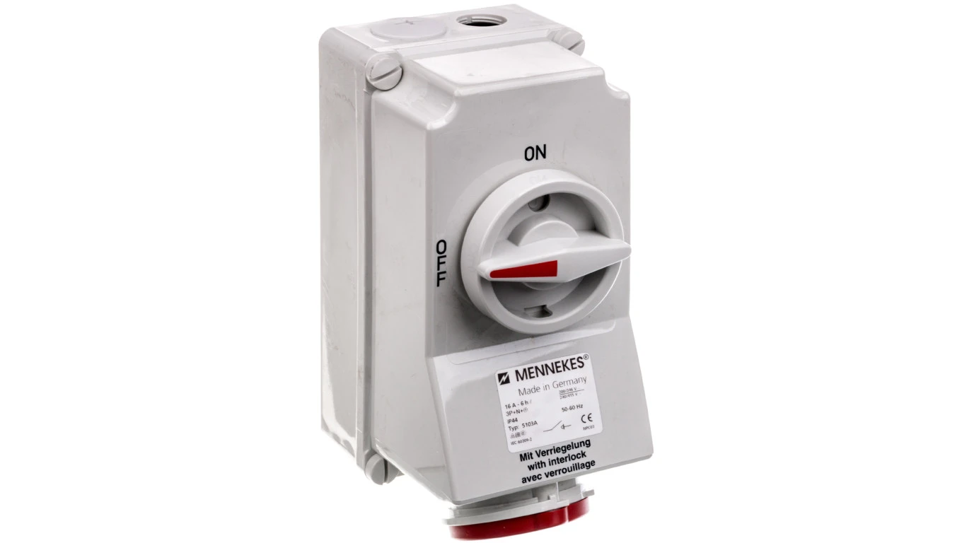 Gniazdo naścienne z rozłącznikiem 16A 5P 6h 400V czerwone IP44 5103A MEN5103A