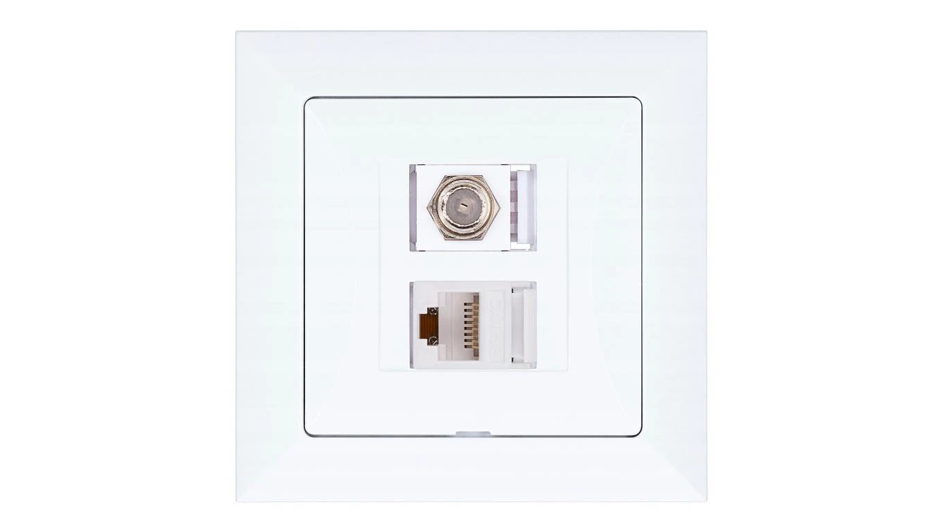 Gniazdo podtynkowe typu F + gn. RJ-45 Pola białe, 33026