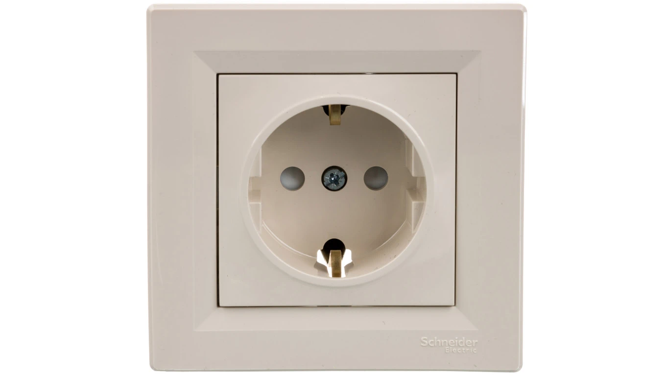 Gniazdo pojedyncze Asfora SCHUKO z przesłonami krem z ramką EPH2900223