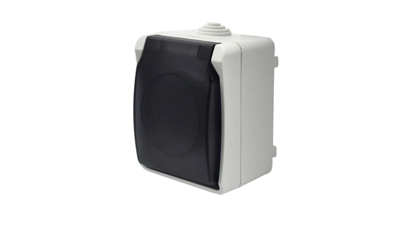 Gniazdo pojedyncze z uziemieniem natynkowe z klapką dymną Aqua Plus IP54 białe / 40116