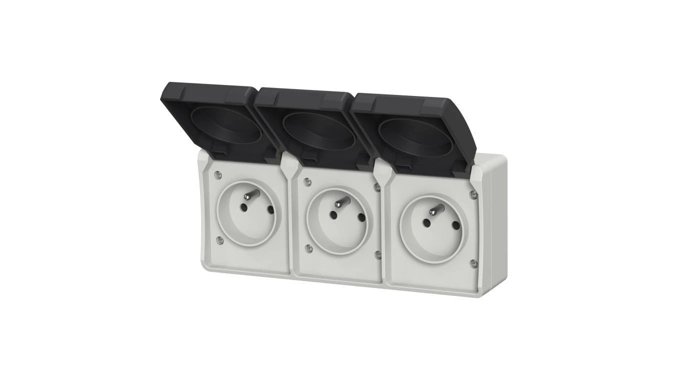 Gniazdo potrójne z uziemieniem natynkowe z klapką Aqua Plus IP44 szaro grafitowe/ 40226