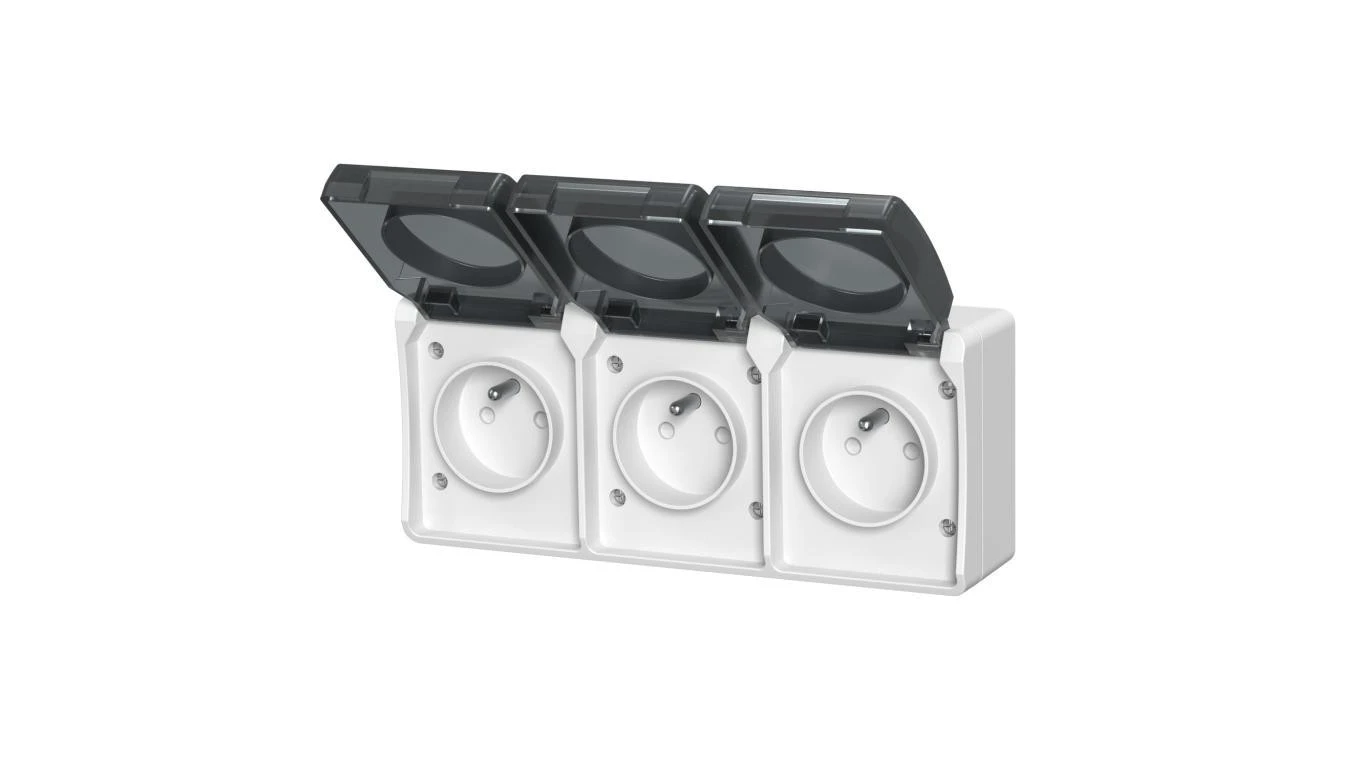 Gniazdo potrójne z uziemieniem natynkowe z klapką dymną Aqua Plus IP44 białe / 40228