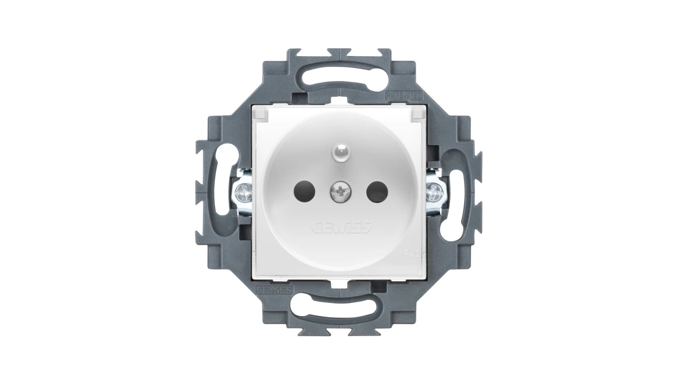 Gniazdo z klapką, z uziemieniem IP 40, 2P+E 16A z przesłonami styków, zaciski śrubowe, biały, Dahlia GW35213W