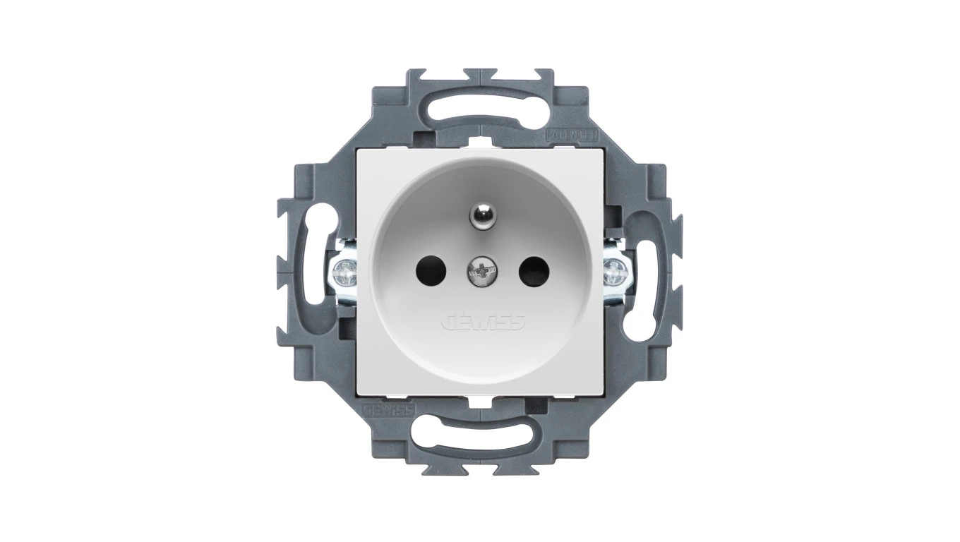 Gniazdo z uziemieniem 2P+E 16A z przesłonami styków, zaciski śrubowe, biały, Dahlia GW35212W
