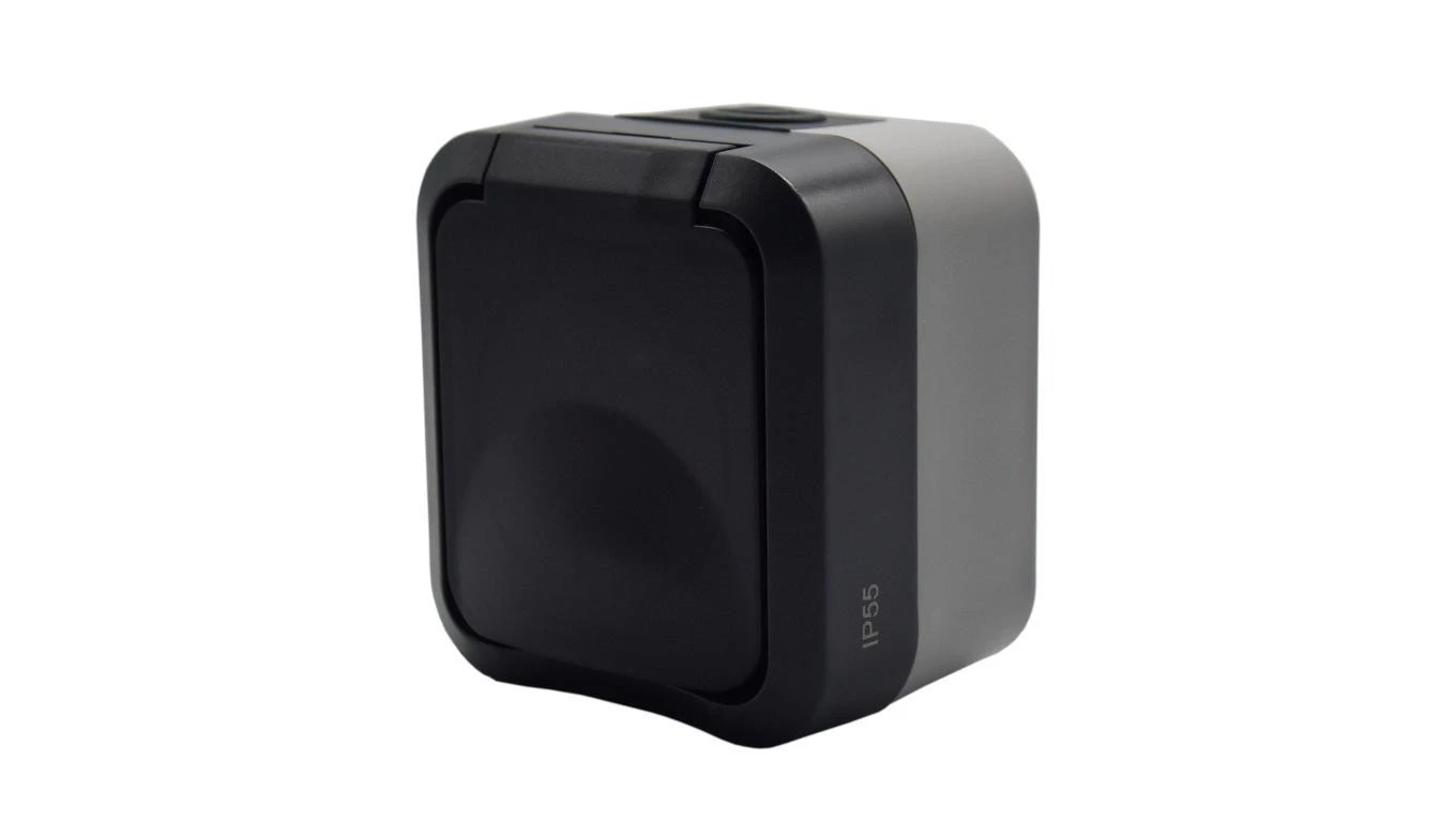 Gniazdo z uziemieniem pojedyncze natynkowe Aqua Pro IP55 szaro grafitowe klapka dymna / 60326