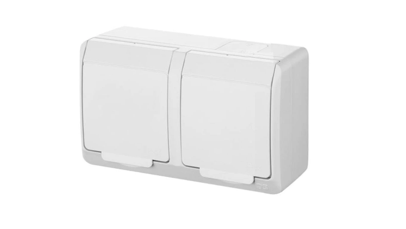 Hermes Gniazdo hermetyczne podwójne natynkowe z uziemieniem 16A IP44 białe GNT 0322-02