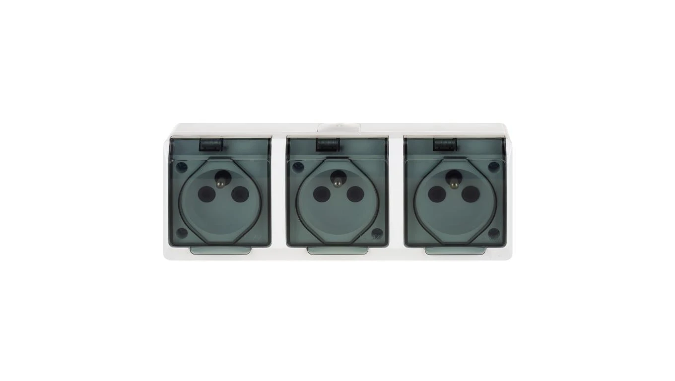 Hermes Gniazdo hermetyczne potrójne natynkowe z uziemieniem z klapką dymną 16A IP44 białe 0323-01