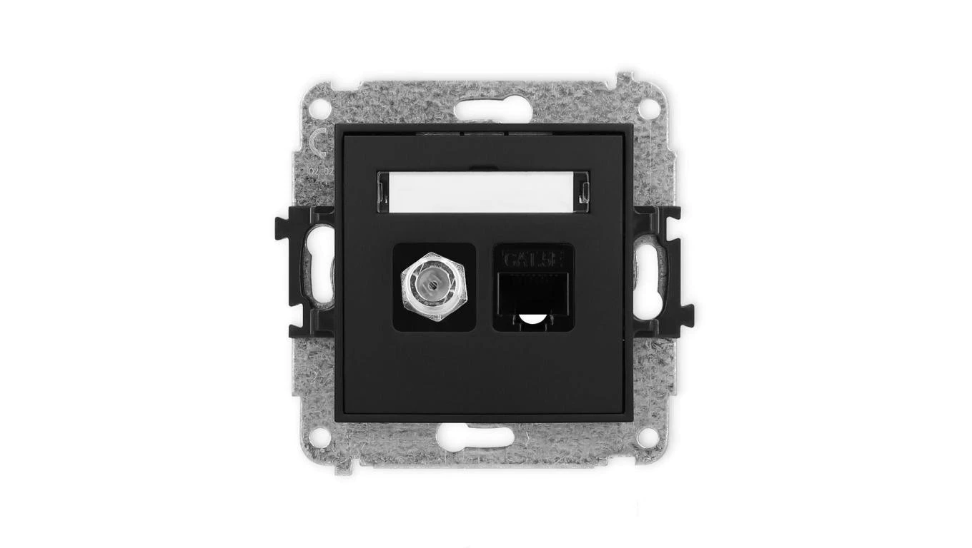 ICON Mechanizm gniazda antenowego poj. typu F (SAT) + gniazda komp. poj. 1xRJ45, kat. 5e, 8-stykowy czarny mat 12IGFK-1