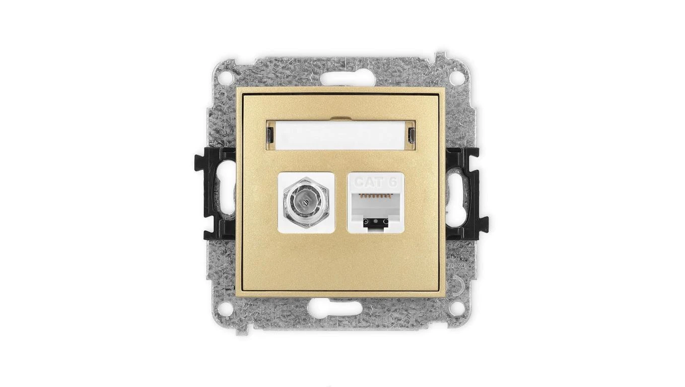 ICON Mechanizm gniazda antenowego poj. typu F (SAT) + gniazda komp. poj. 1xRJ45, kat. 6, 8-stykowy złoty 29IGFK-3