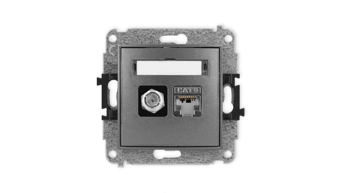 ICON Mechanizm gniazda antenowego poj. typu F (SAT) + gniazda komp. poj. 1xRJ45, kat. 6 ekranowane, 8-stykowy grafitowy 11IGFK-5
