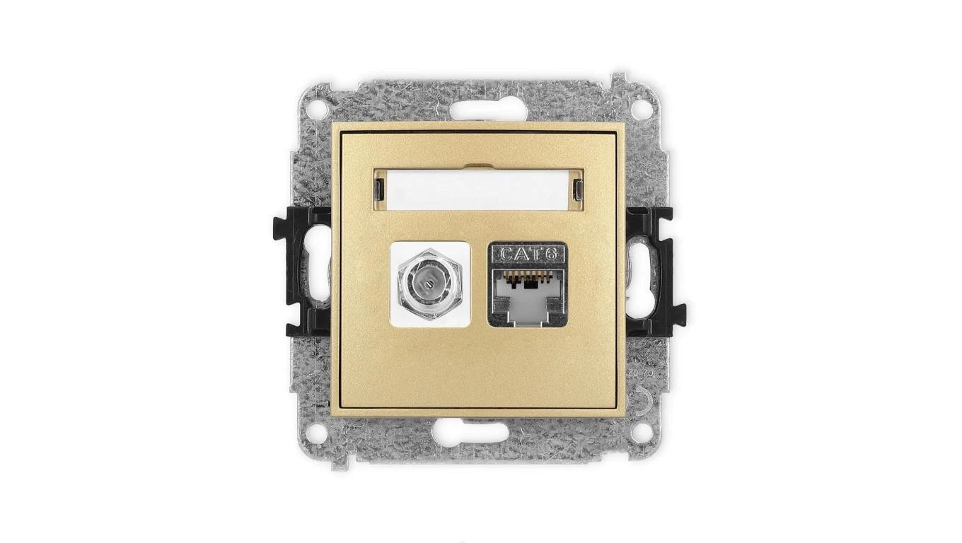 ICON Mechanizm gniazda antenowego poj. typu F (SAT) + gniazda komp. poj. 1xRJ45, kat. 6 ekranowane, 8-stykowy złoty 29IGFK-5