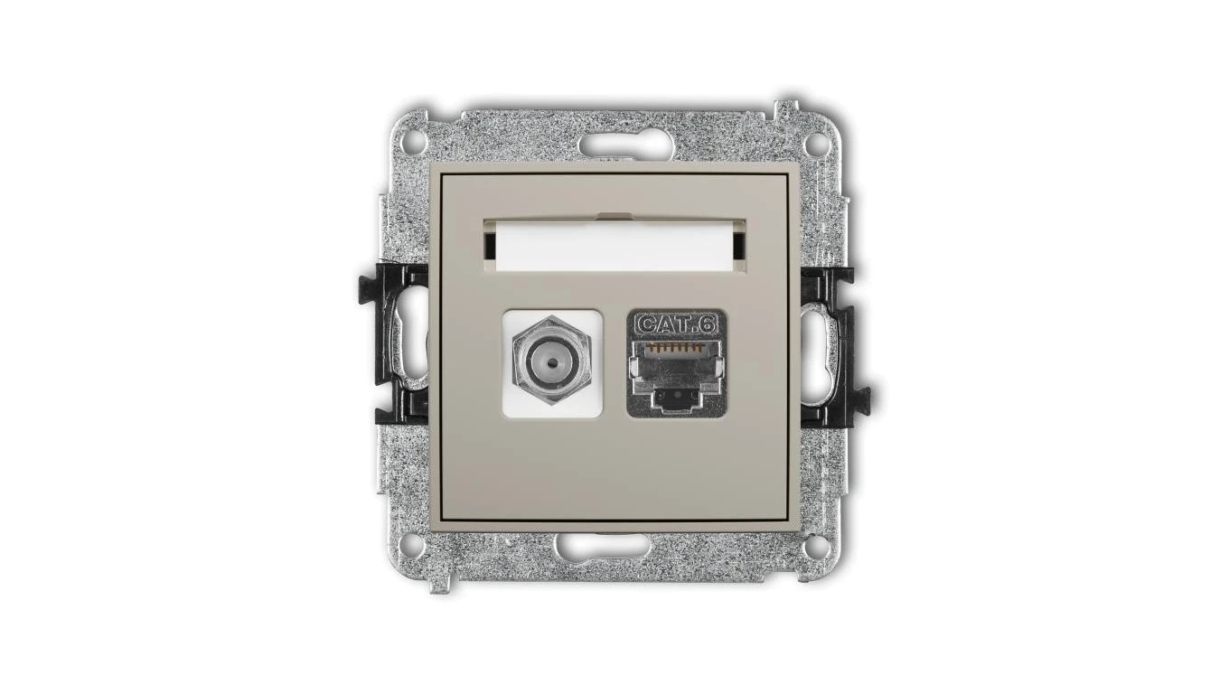 ICON Mechanizm gniazda antenowego poj. typu F (SAT) + gniazda komp. poj. 1xRJ45, kat. 6 ekranowany, 8-stykowy taupe 60IGFK-5