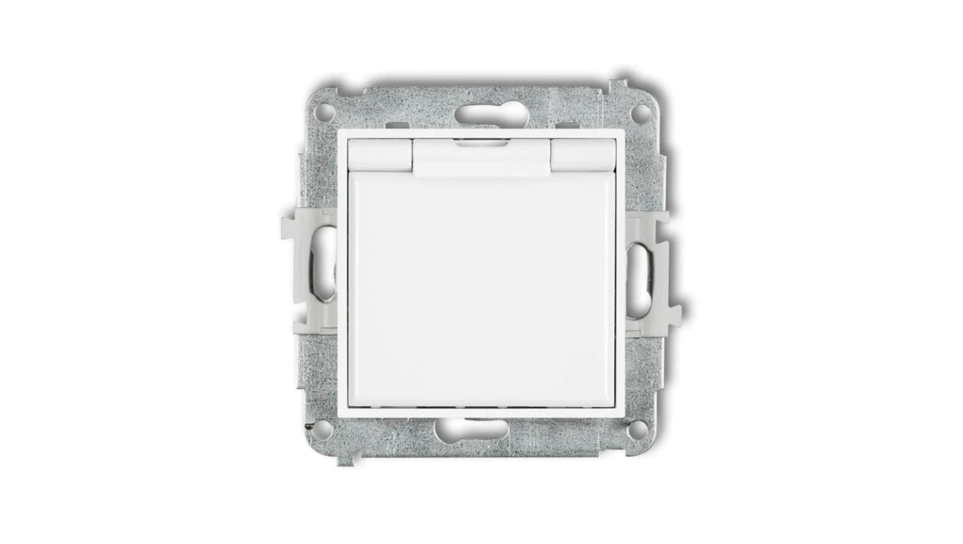 ICON Mechanizm gniazda bryzgoszczelnego z uziemieniem 2P+Z (klapka biała, przesłony torów prądowych) biały IGPB-1zp