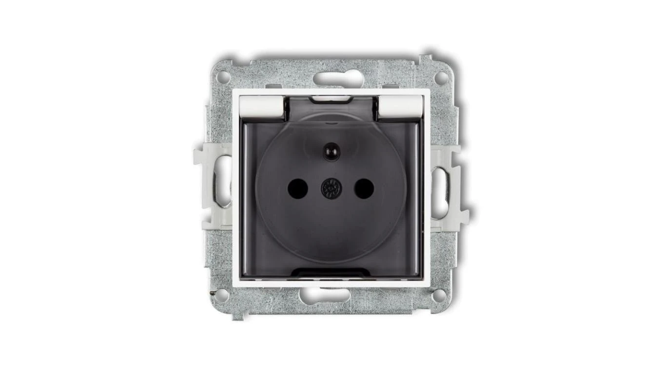 ICON Mechanizm gniazda bryzgoszczelnego z uziemieniem 2P+Z (klapka dymna, przesłony torów prądowych) biały IGPB-1zdp