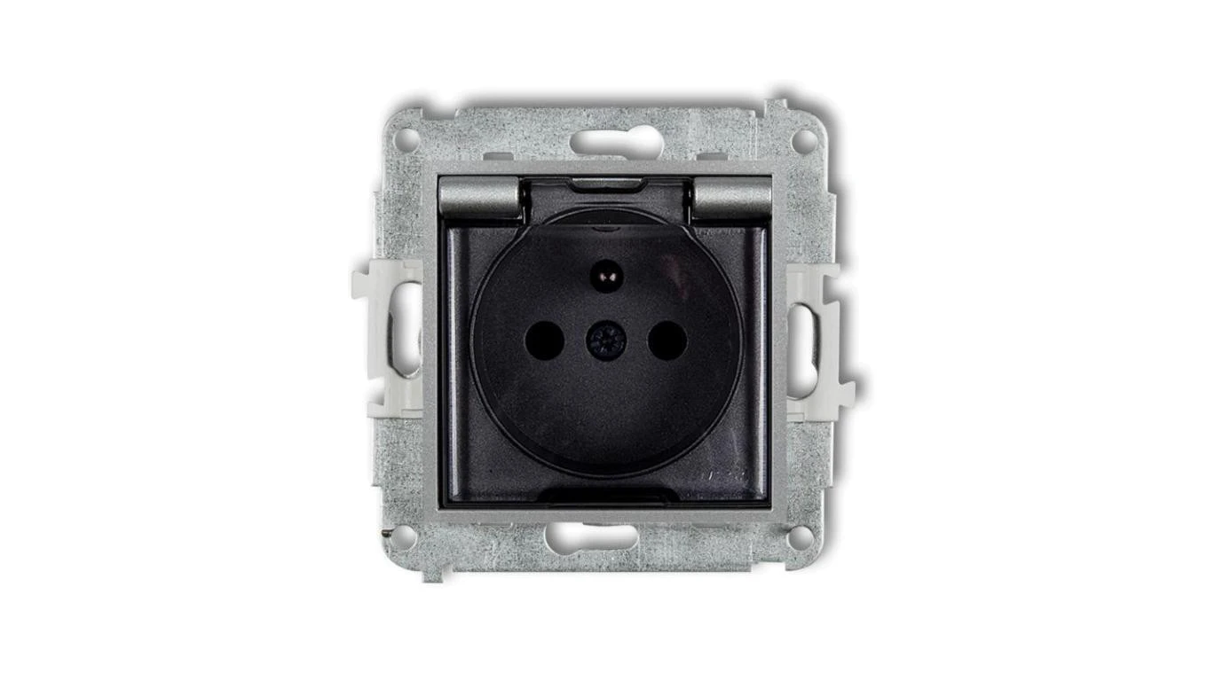 ICON Mechanizm gniazda bryzgoszczelnego z uziemieniem 2P+Z (klapka dymna, przesłony torów prądowych) srebrny metalik 7IGPB-1zdp