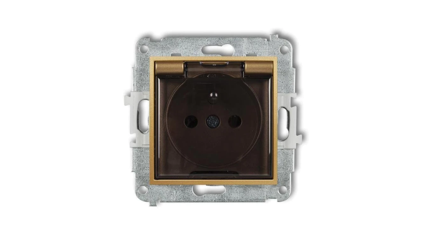 ICON Mechanizm gniazda bryzgoszczelnego z uziemieniem 2P+Z (klapka dymna, przesłony torów prądowych) złoty 29IGPB-1zdp