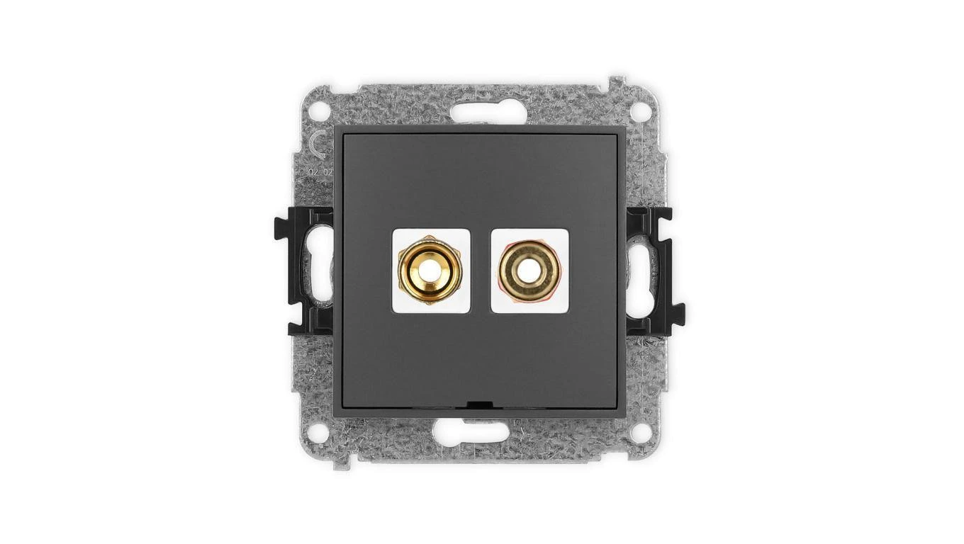 ICON Mechanizm gniazda głośnikowego poj. bez opisu (banan czerwony i czarny, pozłacany, 4 mm2 skręcany) grafitowy mat 28IGGBO-4
