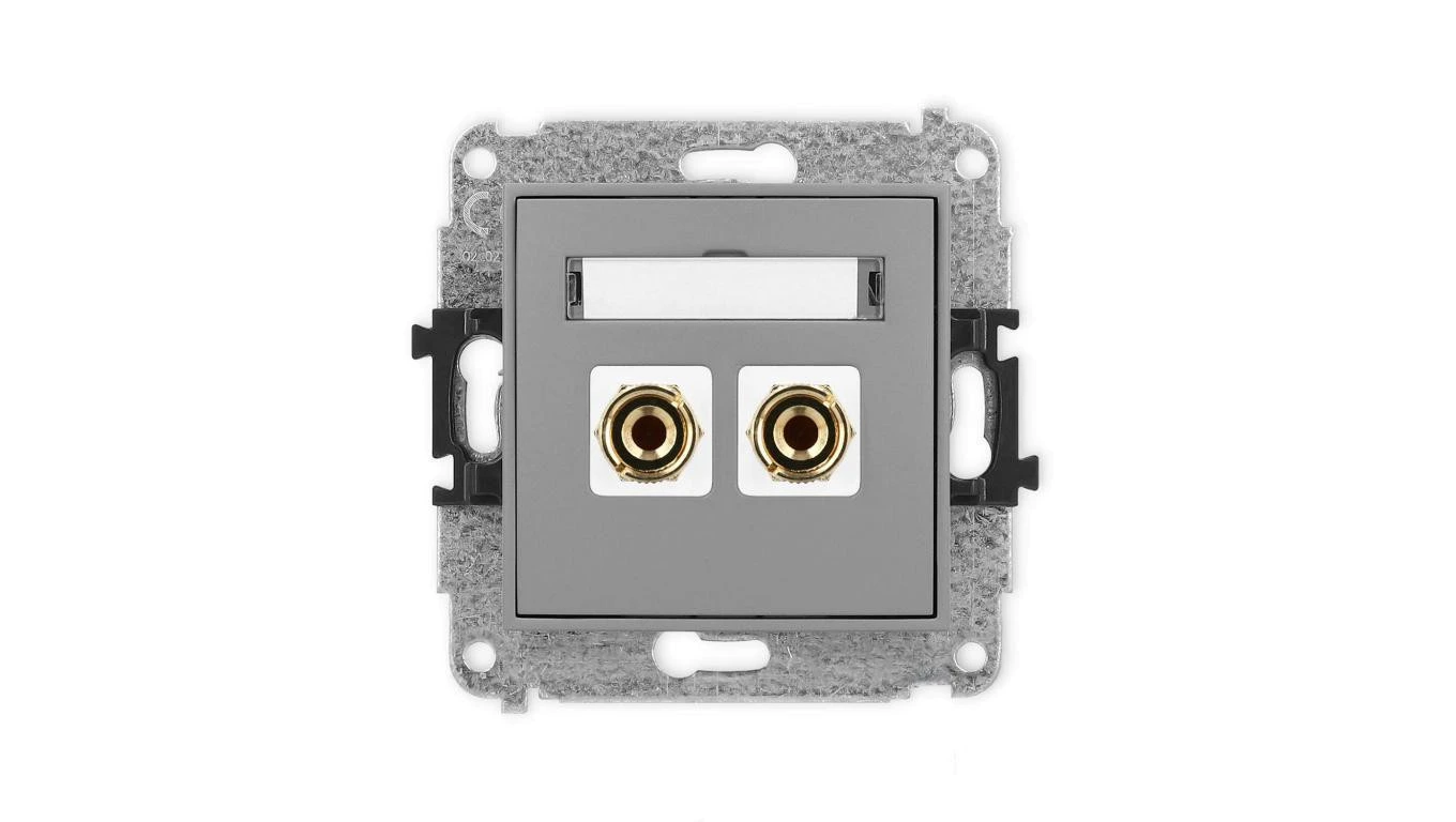 ICON Mechanizm gniazda głośnikowego poj. (typu banan - czerwony i czarny, pozłacany, 4 mm2, do lutowania) szary mat 27IGG-3