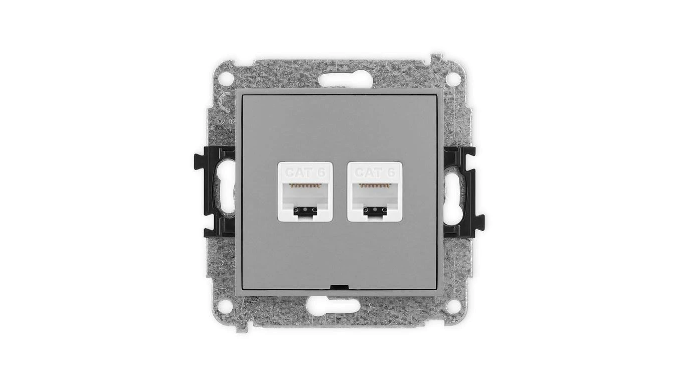 ICON Mechanizm gniazda komputerowego podwójnego 2xRJ45, kat. 6, 8-stykowy, bez pola opisowego szary mat 27IGKBO-4