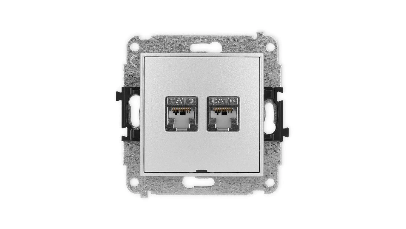 ICON Mechanizm gniazda komputerowego podwójnego 2xRJ45, kat. 6, ekranowane, 8-styk, bez pola opisowego srebrny metalik 7IGKBO-6