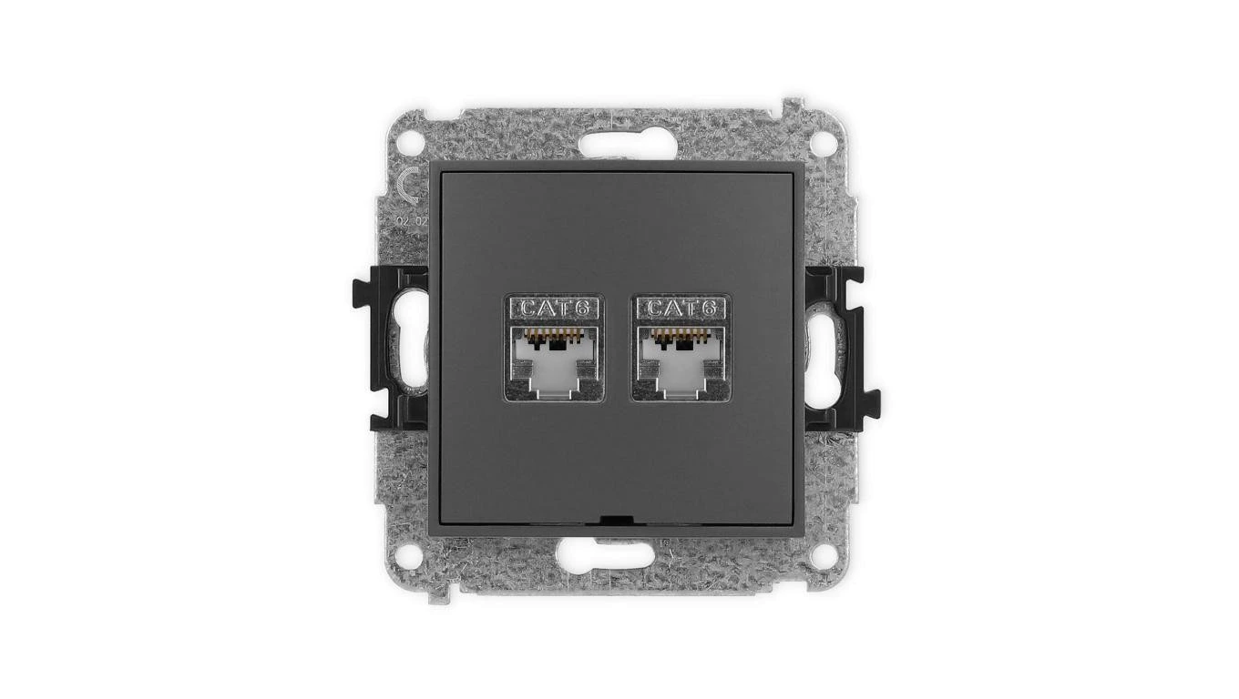 ICON Mechanizm gniazda komputerowego podwójnego 2xRJ45, kat. 6, ekranowane, 8-styk, bez pola opisowego grafitowy mat 28IGKBO-6