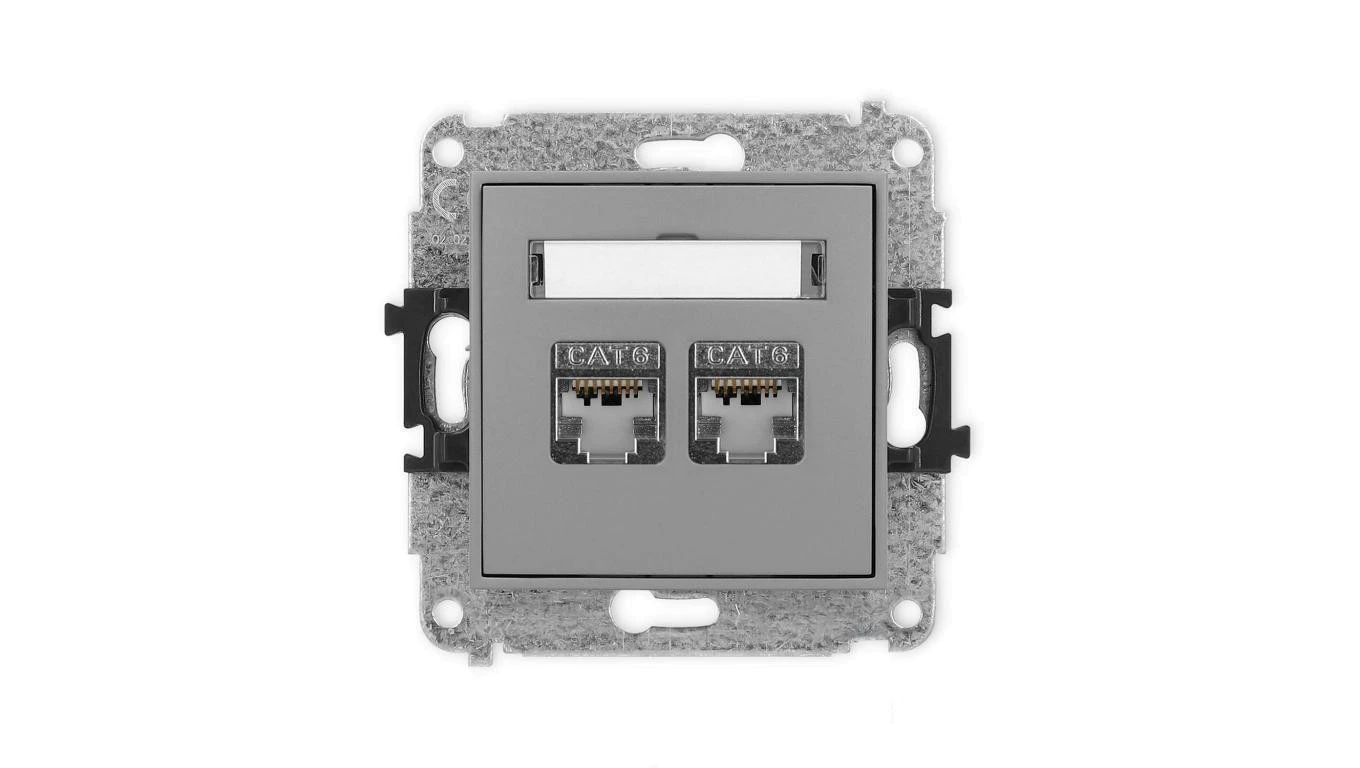 ICON Mechanizm gniazda komputerowego podwójnego 2xRJ45, kat. 6, ekranowane, 8-stykowy szary mat 27IGK-6