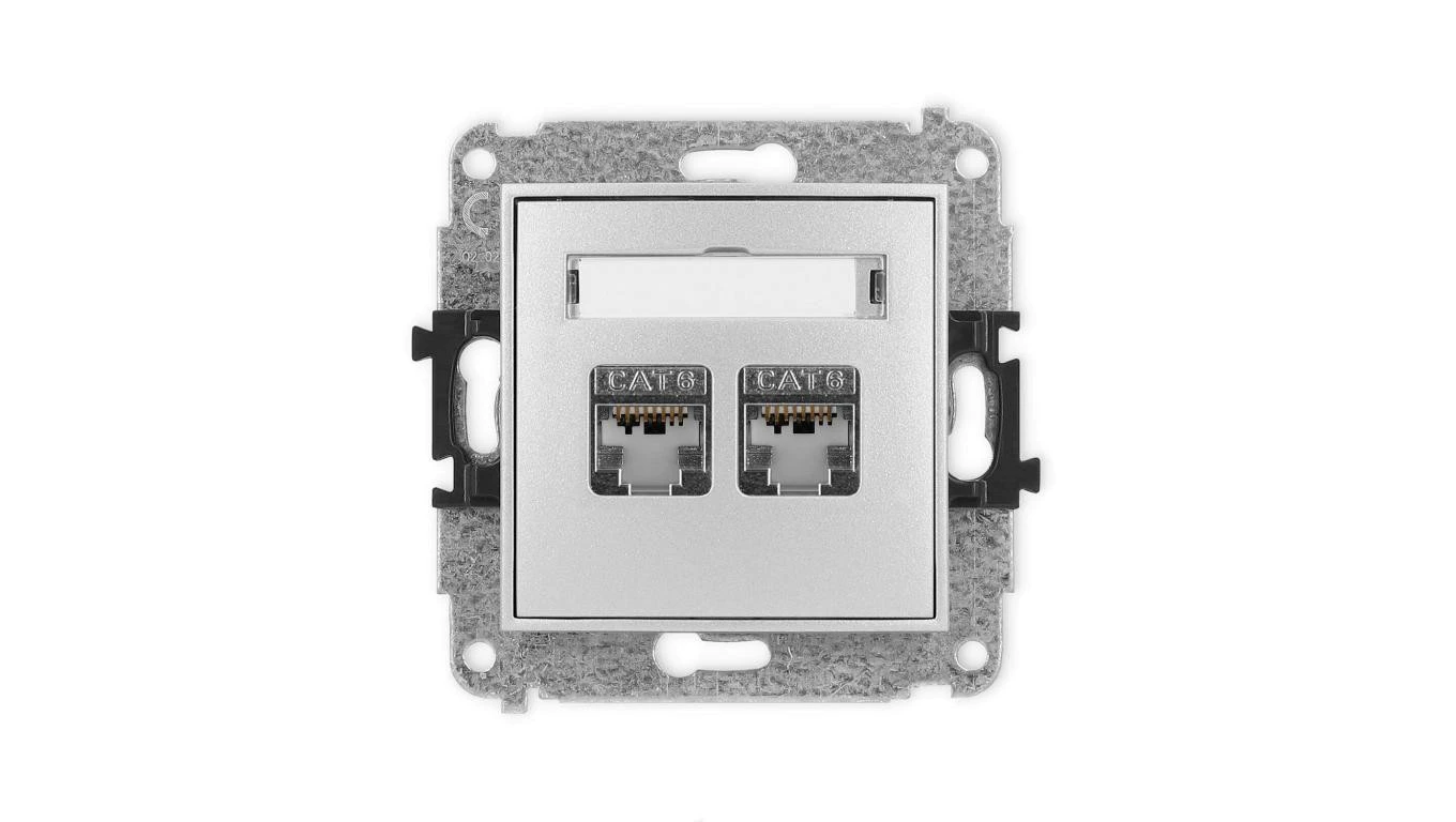 ICON Mechanizm gniazda komputerowego podwójnego 2xRJ45, kat. 6, ekranowane, 8-stykowy srebrny metalik 7IGK-6
