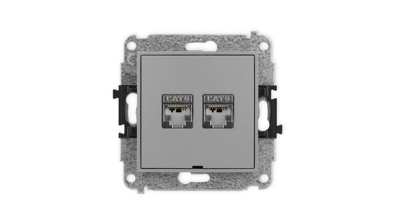 ICON Mechanizm gniazda komputerowego podwójnego 2xRJ45, kat. 6, ekranowane, 8-stykowy, bez pola opisowego szary mat 27IGKBO-6