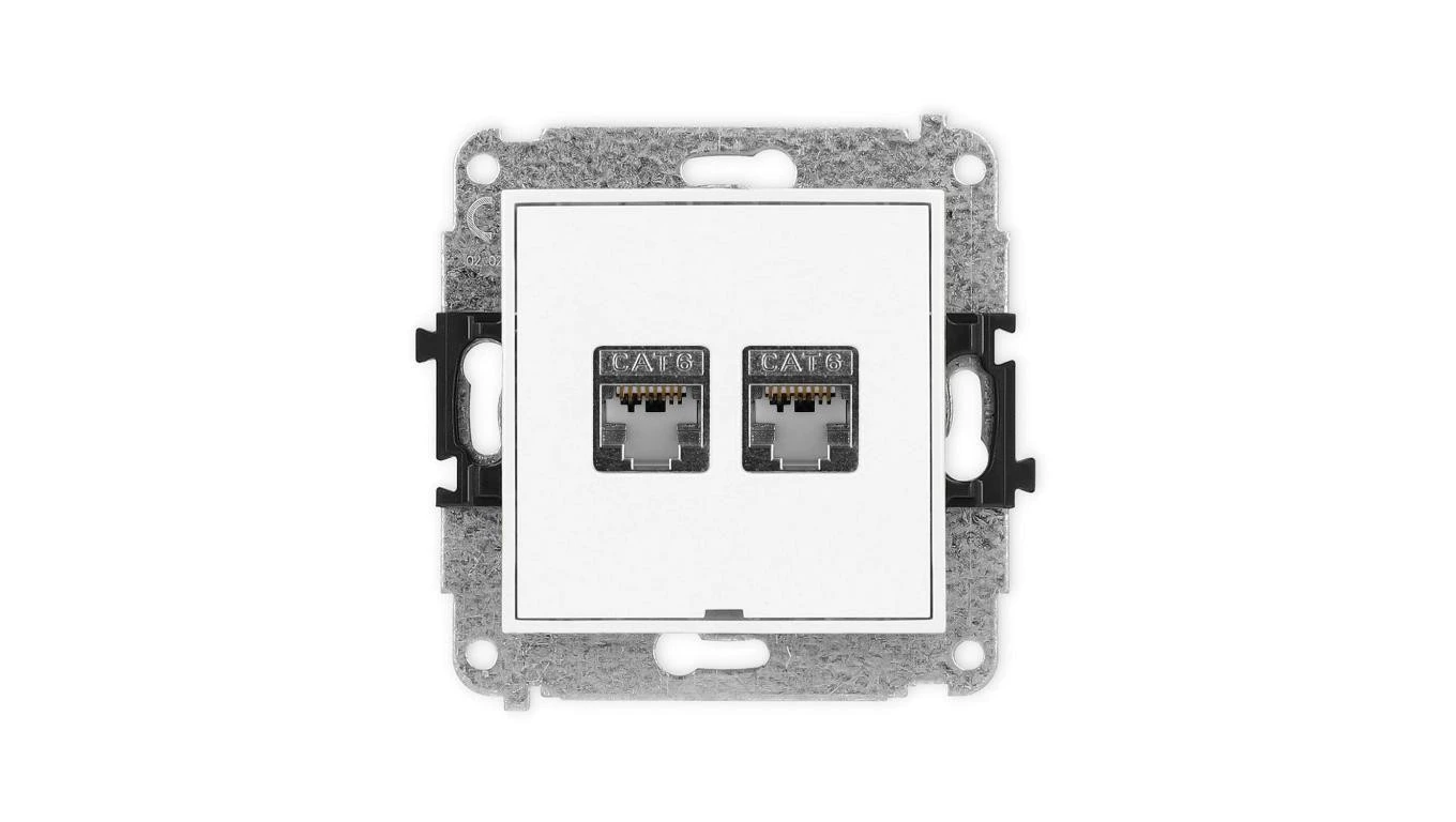 ICON Mechanizm gniazda komputerowego podwójnego 2xRJ45, kat. 6, ekranowane, 8-stykowy, bez pola opisowego biały mat 25IGKBO-6