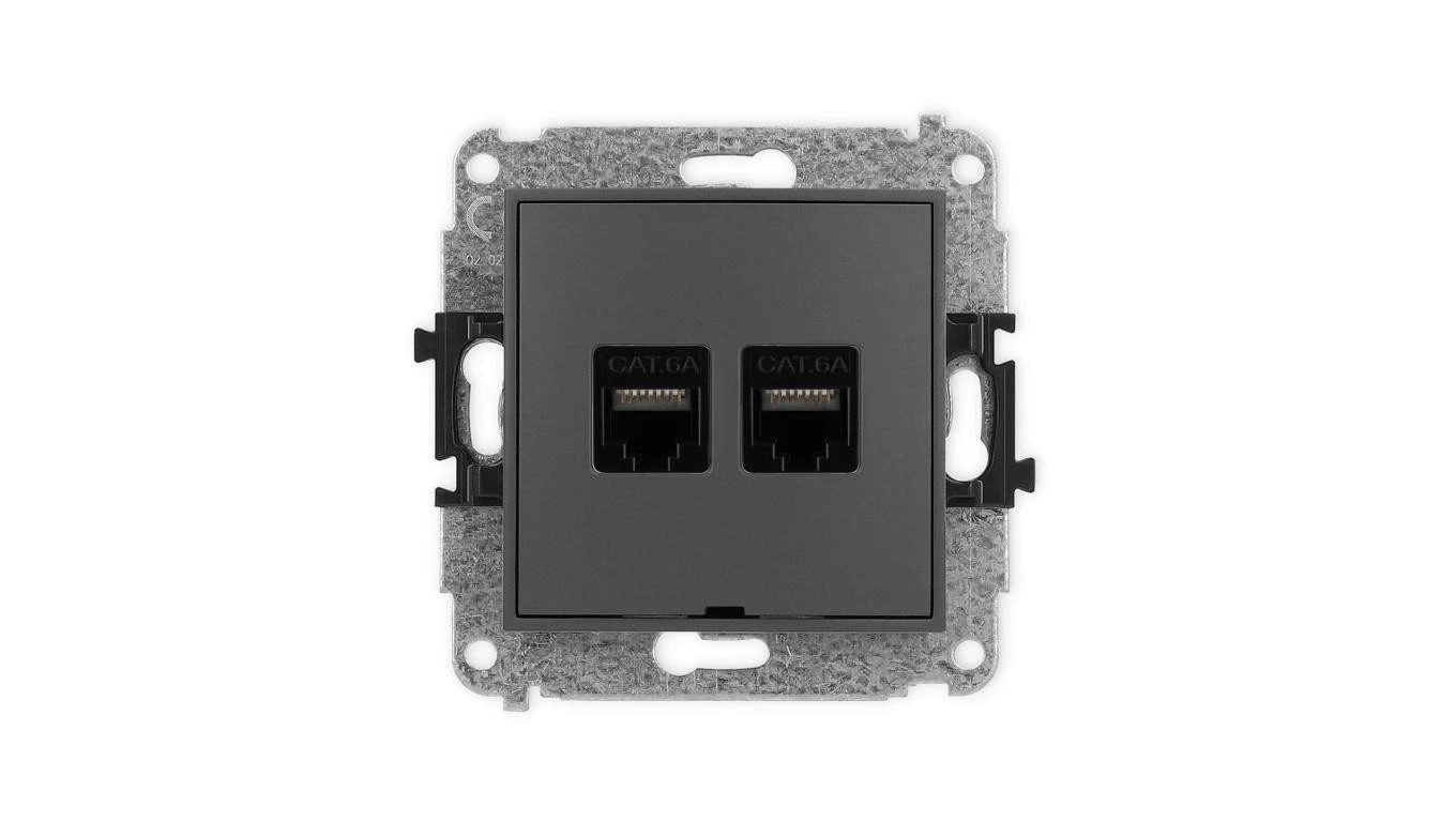 ICON Mechanizm gniazda komputerowego podwójnego 2xRJ45, kat. 6A, 8-stykowy, bez pola opisowego grafitowy mat 28IGKBO-8