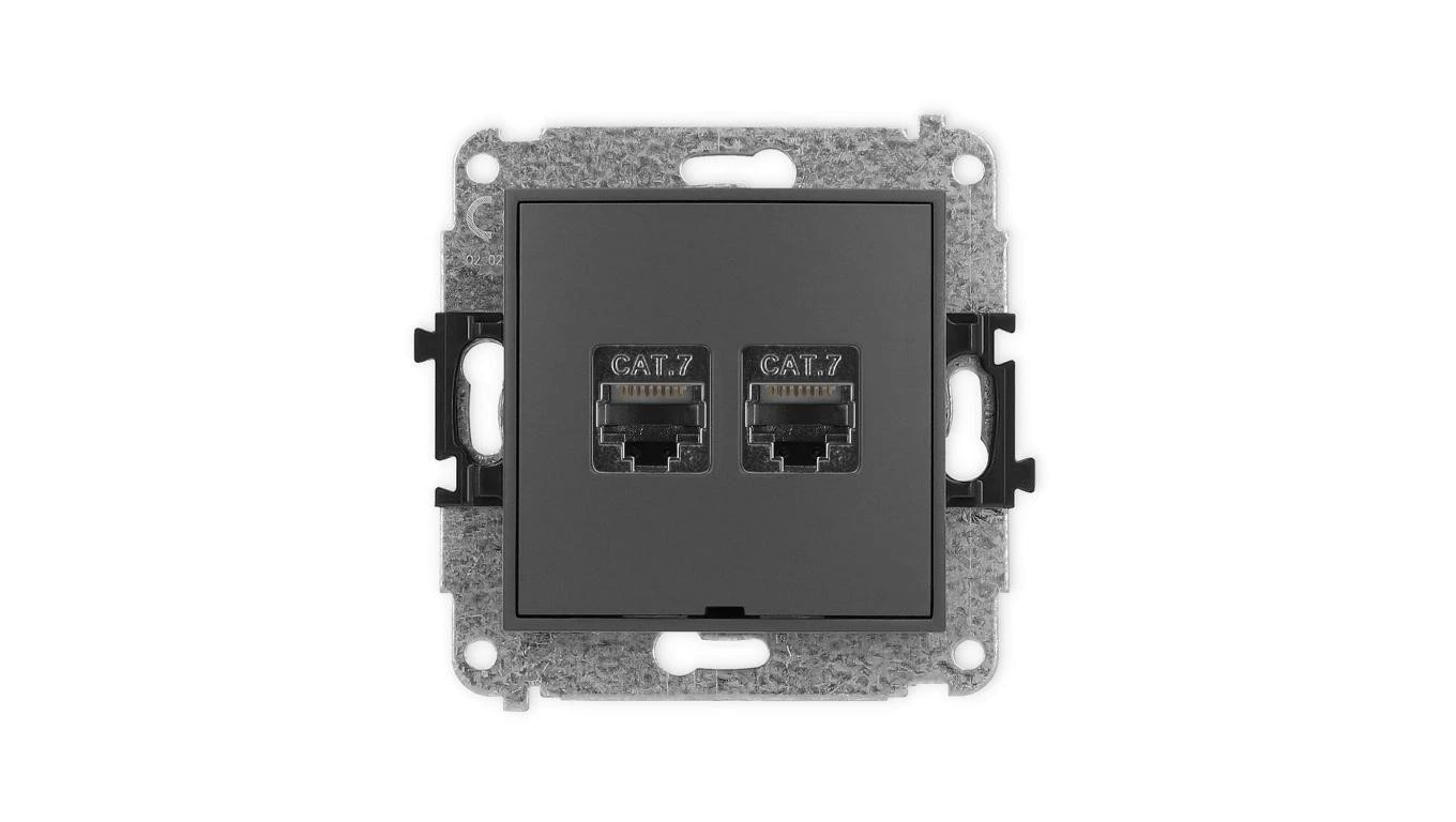 ICON Mechanizm gniazda komputerowego podwójnego 2xRJ45, kat. 7, ekranowane, 8-styk, bez pola opisowego grafitowy mat 28IGKBO-10