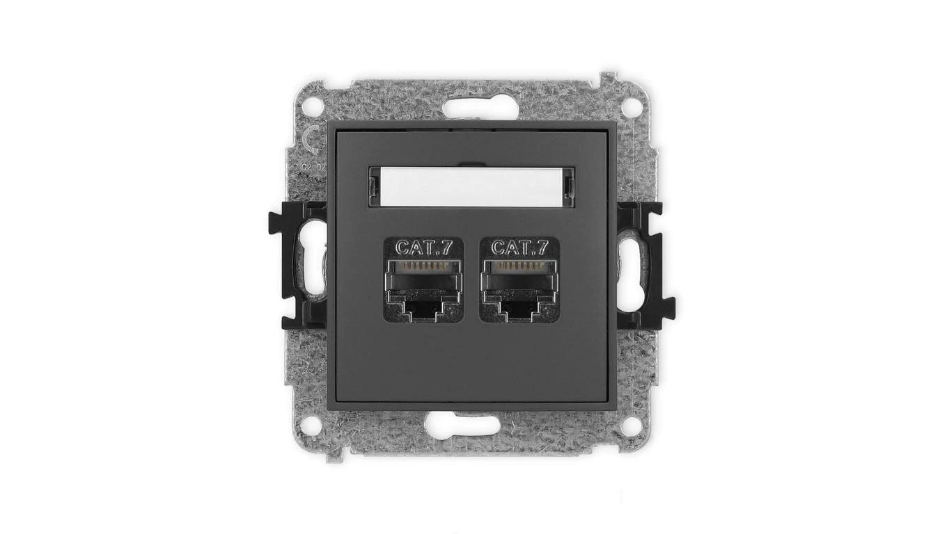 ICON Mechanizm gniazda komputerowego podwójnego 2xRJ45, kat. 7, ekranowane, 8-stykowy grafitowy mat 28IGK-10