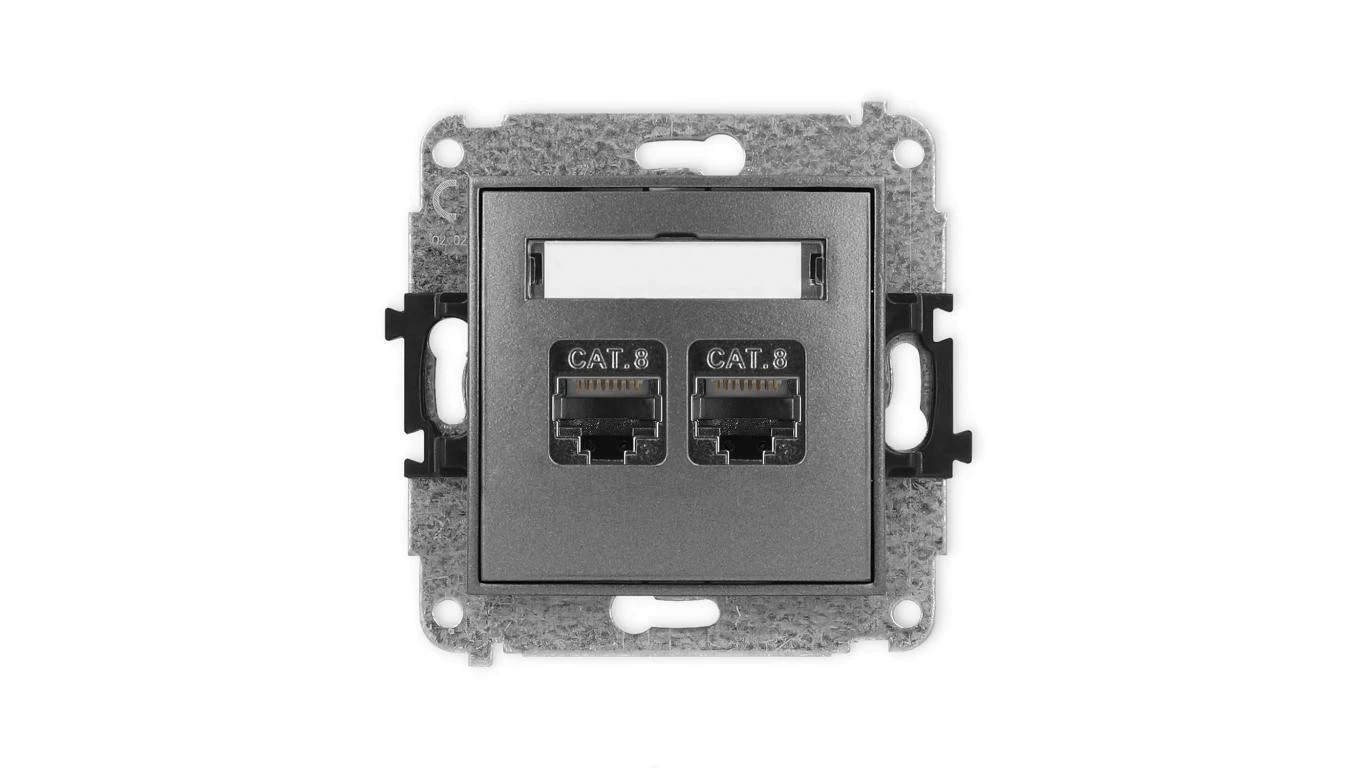 ICON Mechanizm gniazda komputerowego podwójnego 2xRJ45, kat. 8, ekranowane, 8-stykowy grafitowy 11IGK-12