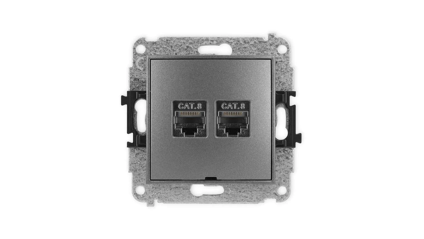 ICON Mechanizm gniazda komputerowego podwójnego 2xRJ45, kat. 8, ekranowane, 8-stykowy, bez pola opisowego grafitowy 11IGKBO-12