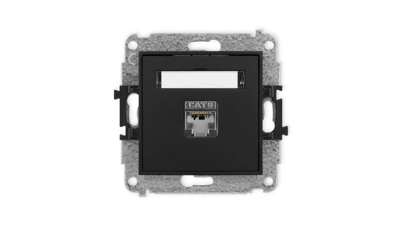 ICON Mechanizm gniazda komputerowego pojedynczego 1xRJ45, kat. 6, ekranowane, 8-stykowy czarny mat 12IGK-5