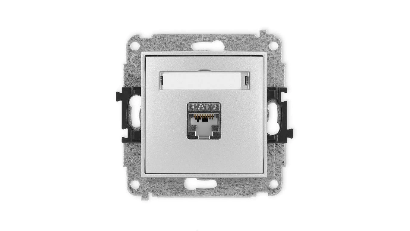 ICON Mechanizm gniazda komputerowego pojedynczego 1xRJ45, kat. 6, ekranowane, 8-stykowy srebrny metalik 7IGK-5