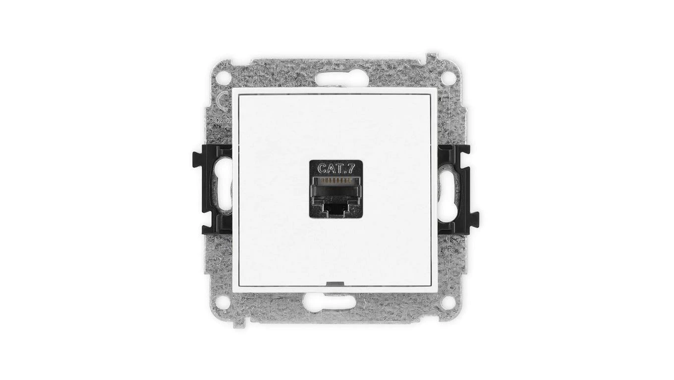 ICON Mechanizm gniazda komputerowego pojedynczego 1xRJ45, kat. 7, ekranowane, 8-stykowy, bez pola opisowego biały mat 25IGKBO-9