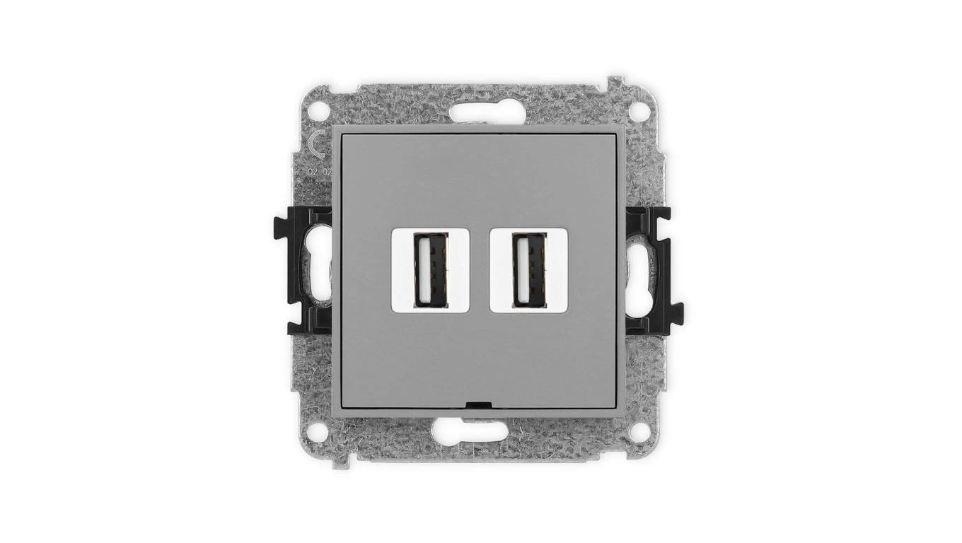 ICON Mechanizm gniazda podwójnego 2xUSB A-A 2.0, bez pola opisowego szary mat 27IGUSBBO-2