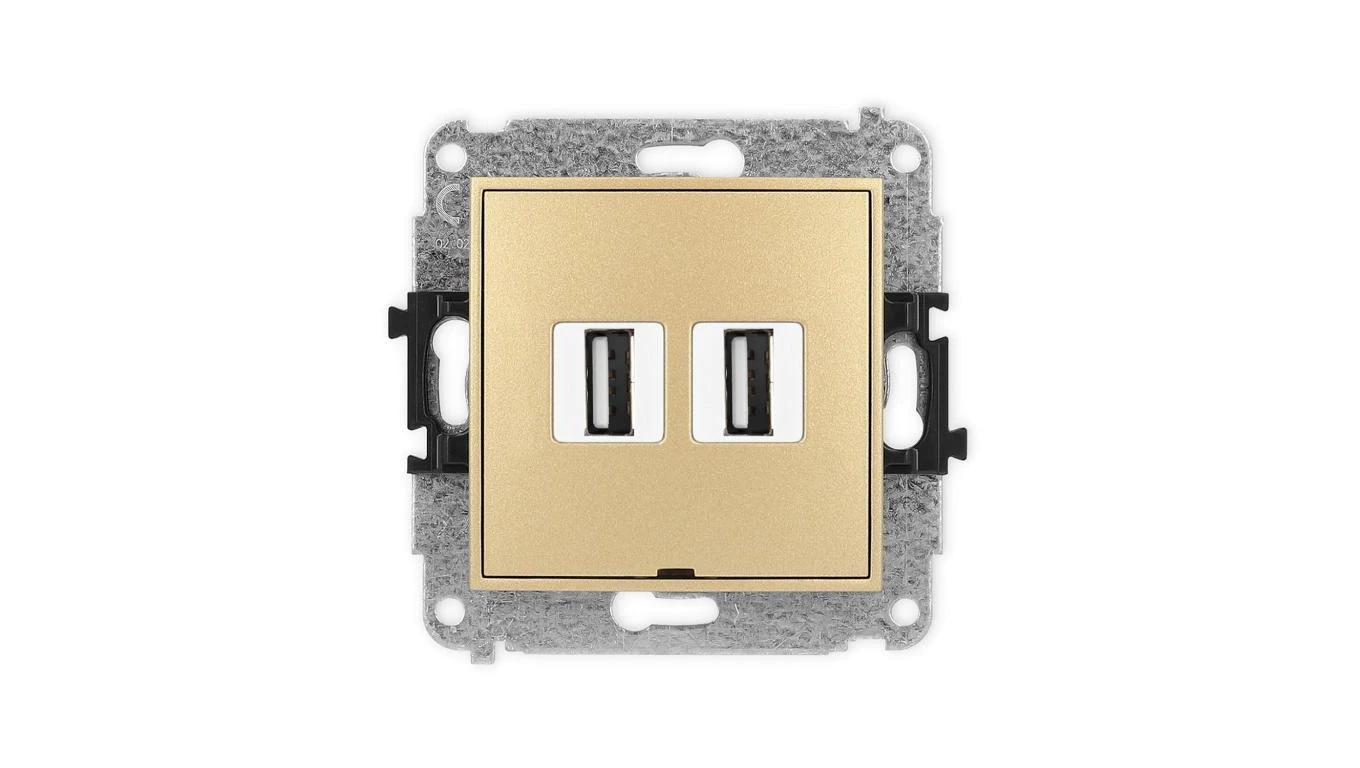 ICON Mechanizm gniazda podwójnego 2xUSB A-A 2.0, bez pola opisowego złoty 29IGUSBBO-2
