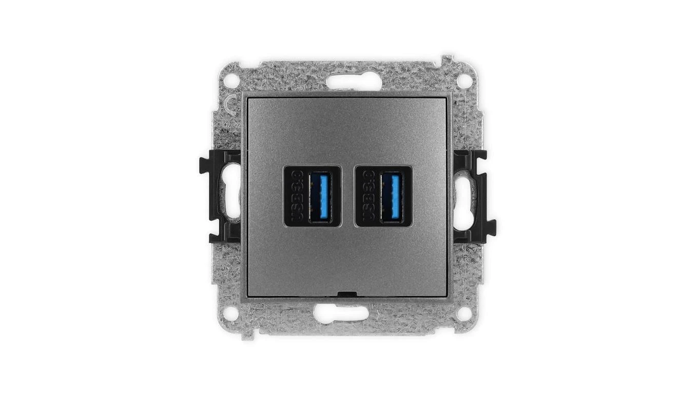 ICON Mechanizm gniazda podwójnego 2xUSB A-A 3.0, bez pola opisowego grafitowy 11IGUSBBO-6