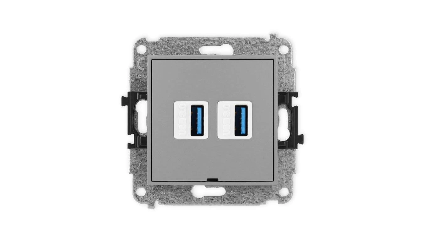 ICON Mechanizm gniazda podwójnego 2xUSB A-A 3.0, bez pola opisowego szary mat 27IGUSBBO-6