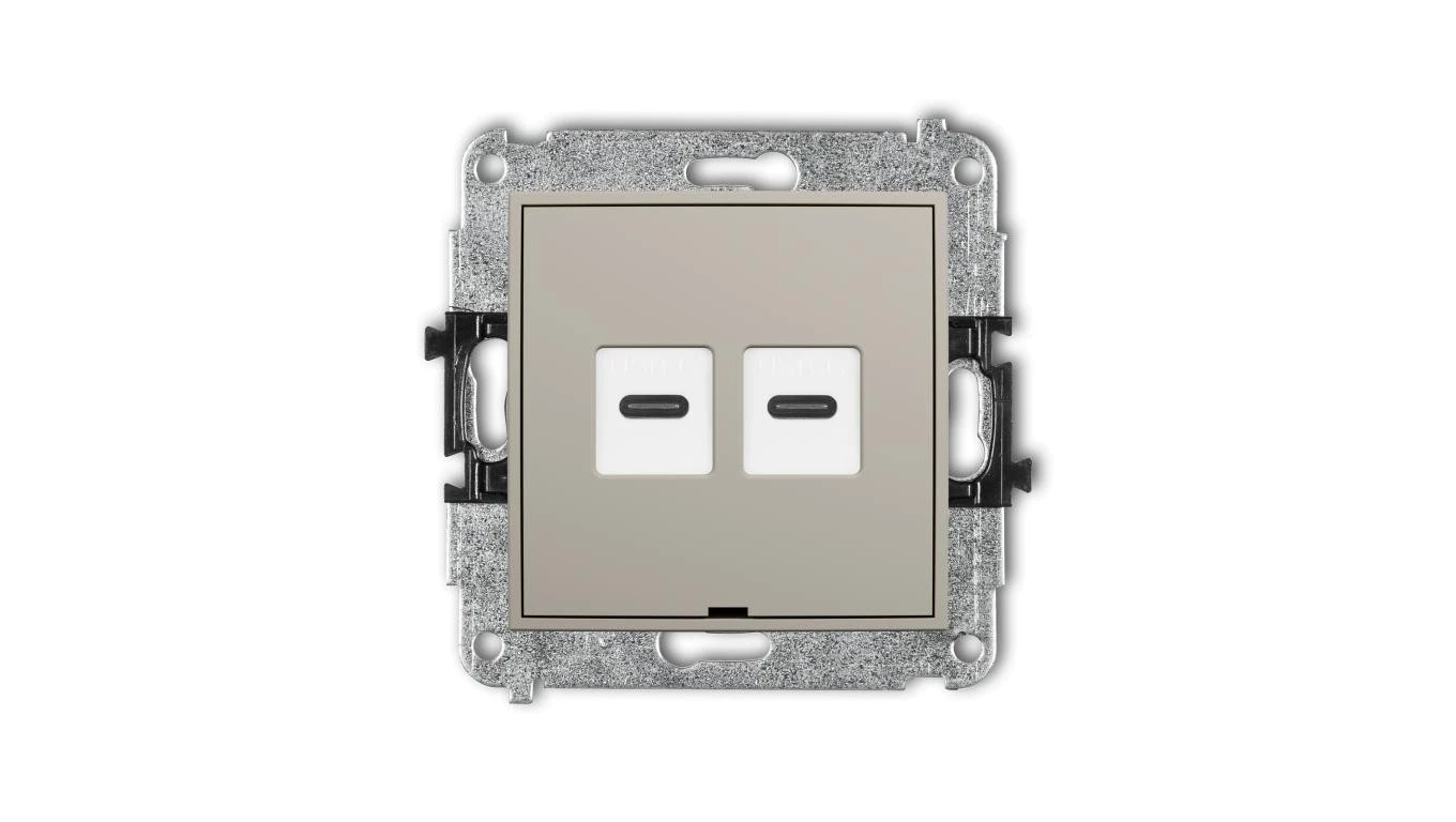 ICON Mechanizm gniazda podwójnego 2xUSB C-C, bez pola opisowego taupe 60IGUSBBO-8