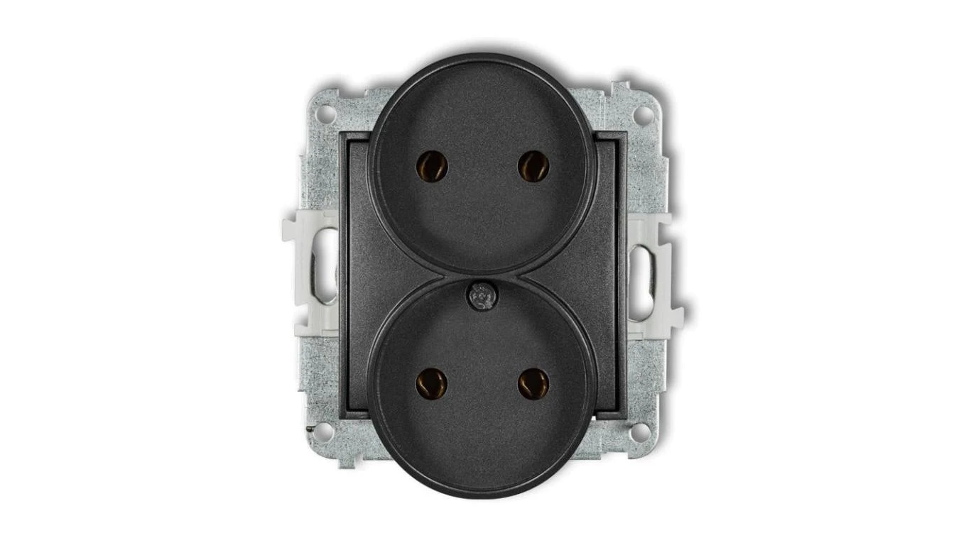 ICON Mechanizm gniazda podwójnego do ramki bez uziemienia 2x2P (bez przesłon torów prądowych) grafitowy 11IGPR-2