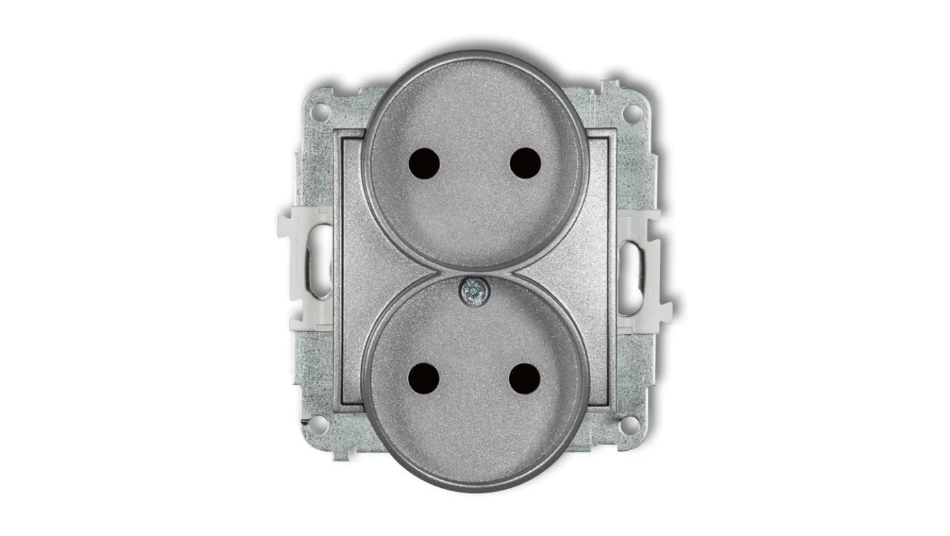 ICON Mechanizm gniazda podwójnego do ramki bez uziemienia 2x2P (przesłony torów prądowych) srebrny metalik 7IGPR-2p